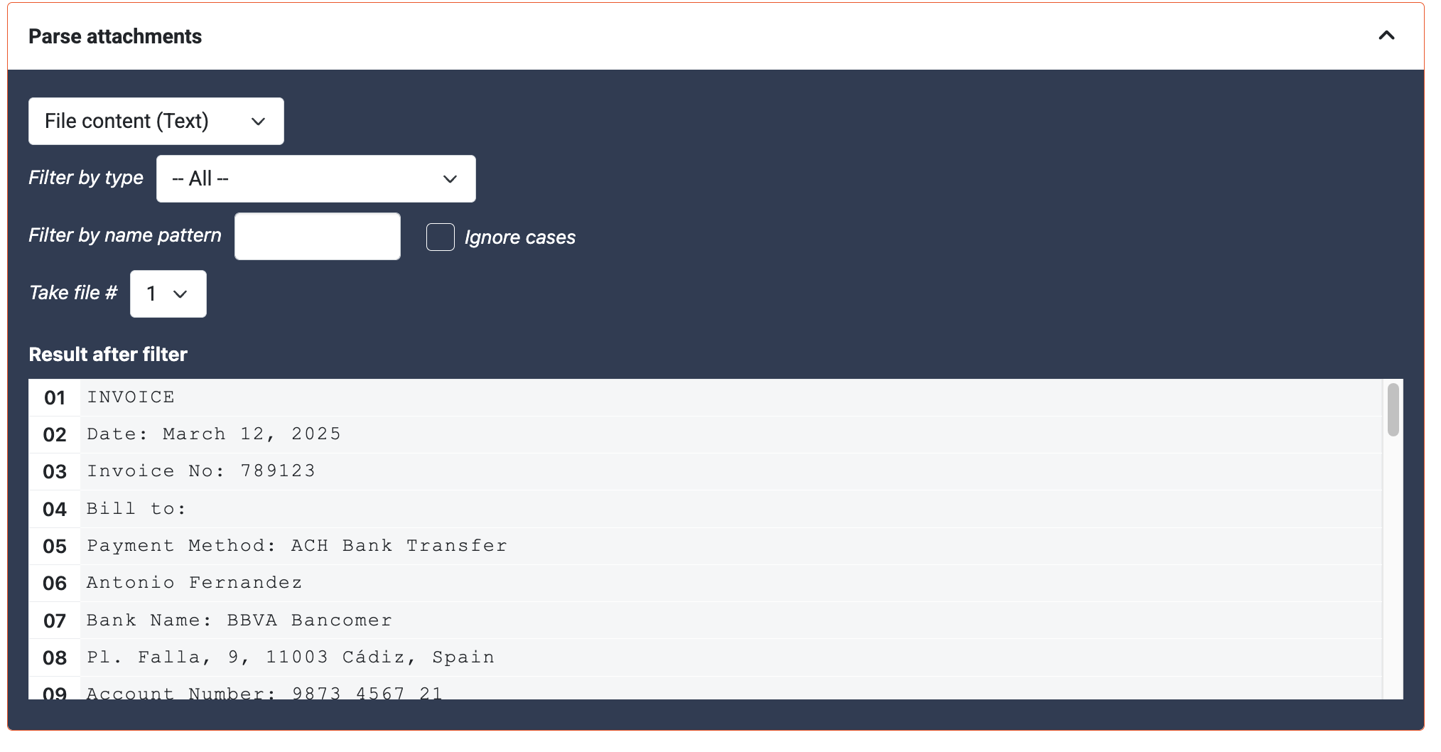 Once configured, your parsing rules will work just like they do for email body content, allowing seamless data extraction from attachments.
